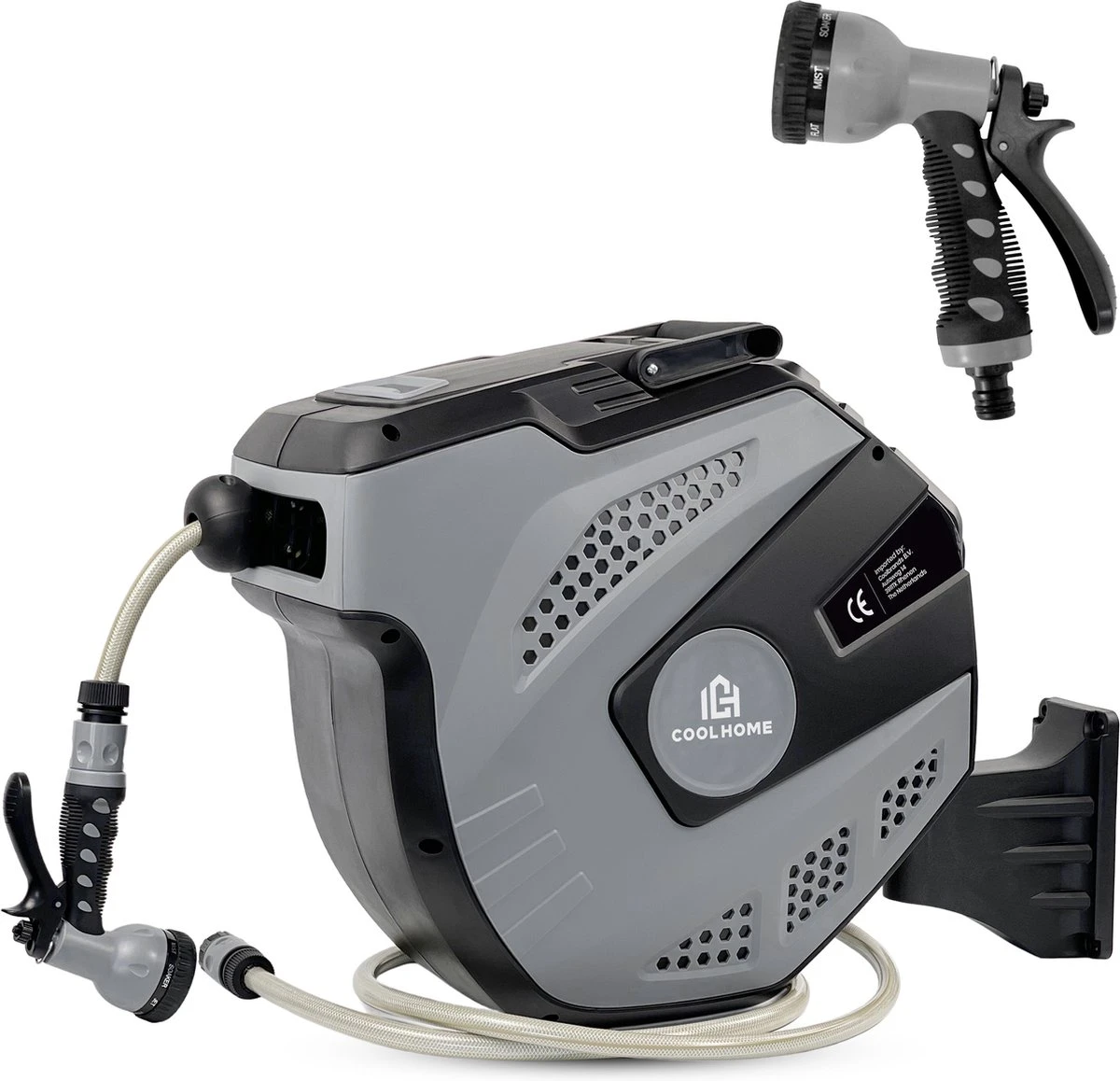 CoolHome – Wandslangenbox 20 Meter + 2 Meter – Tuinslang Met Haspel- Slangenhouder 180° Draaibaar – Tuinslanghaspel Zwart – Grijs