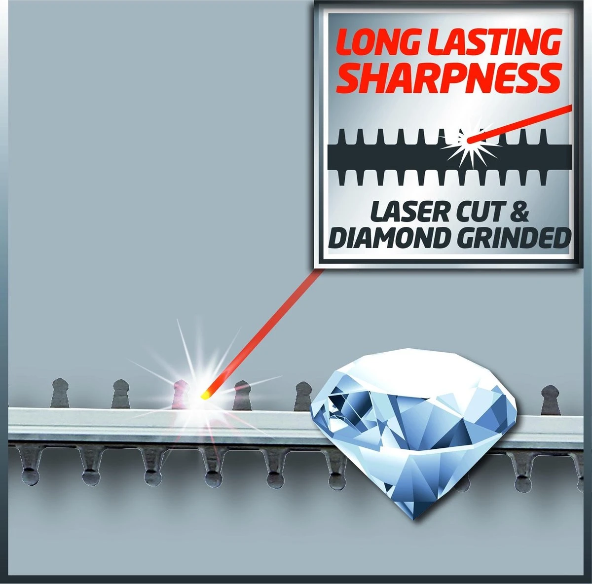 Voor een ergonomische manier van werken is de kop van deze telescoop heggenschaar kantelbaar. Zo kunnen hoge hagen ook aan de bovenzijde moeiteloos geknipt worden. Het snijblad van de machine is gemaakt met lasergesneden en diamant geslepen staal, voor een optimaal resultaat.
