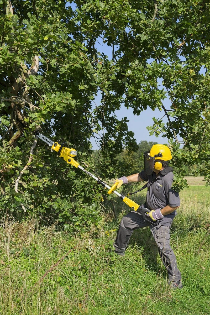 Deze kettingzaag is geschikt voor zaagklussen die met een normale kettingzaag moeilijk zijn uit te voeren vanwege hoge takken en of moeilijk bereikbare plekken. Door het telescopische verlengstuk te verwijderen, transformeer je het toestel tot een gewone kettingzaag.