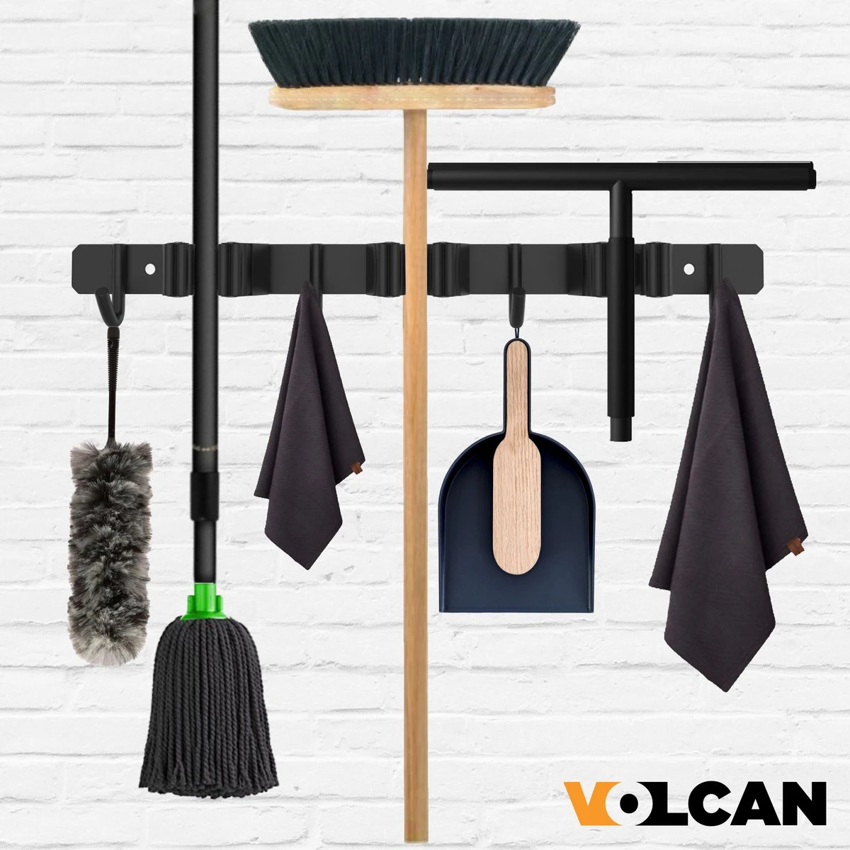 Met een lengte van slechts 38cm plaats je de bezemhouder zonder problemen op de kleinste plekken. En met 3 klemmen en 4 haken heb je voldoende ruimte voor de meest gangbare hulpmiddelen.